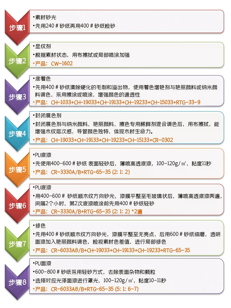 大寶研發團隊推出的艷麗顏料,運用納米技術讓納米級的微細粒子與樹脂充分融合,滲透至基材內部,保證產品分子結構的穩定性,本涂裝工藝打破傳統色精著色屬性,將顏色閃透于漆膜層次中的表現,在不刻意做作,不過度加工的情況下,保留烏金木獨一無二的木質結構,也因其色澤煥發炫彩奪目的華美質感,富饒現代與永恒的涂裝工藝,縮短物我的距離,體現出薄透質感,淬煉實木優雅。