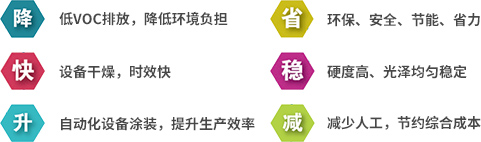 目前,水性木器漆、UV漆是公認的環保產品。大寶的水性木器漆作為家具行業綠色涂裝產品,從早期的水性美式涂裝,水性單組分到水性雙組份,再到UV涂料不斷突破技術難題,革新工藝,與時俱進滿足環保家具涂裝的客戶需求,不斷創新、優化,為行業油改水涂裝改革賦能。