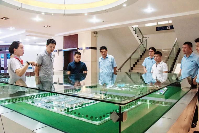 首先前往東莞大寶化工的模型區,詳細介紹廠區整體規模及建物概述,就公司的發展歷程、產品優勢、轉型升級情況及持續做到環境友好等內容向其做了說明。