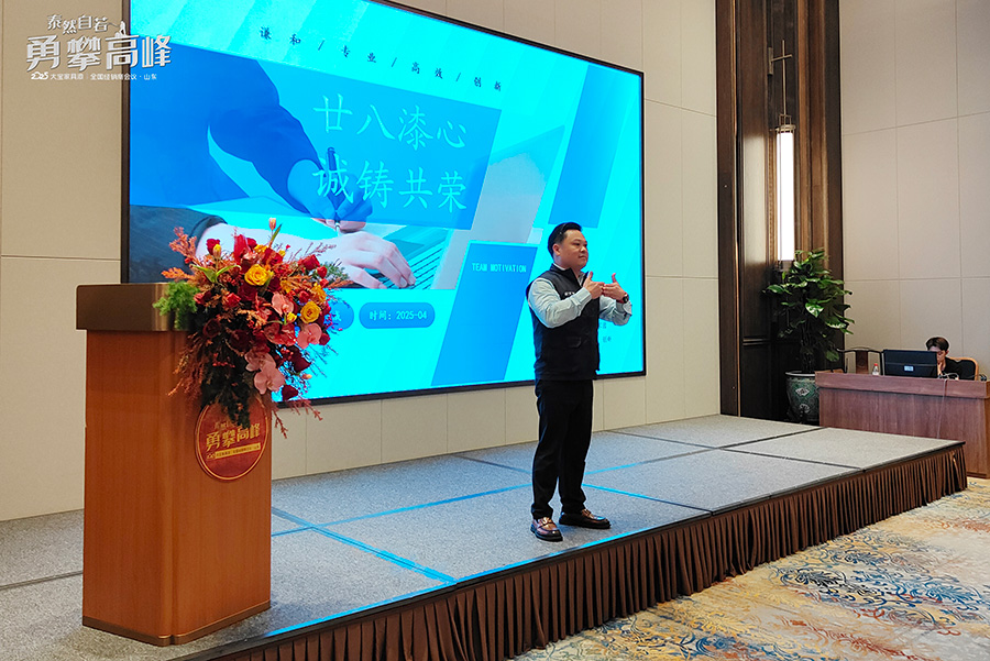大會在業務副理寶哥溫情洋溢的開場中拉開序幕。一句熟悉的問候不僅喚起與會者的美好記憶,更象征著大寶與經銷商伙伴之間深厚的信任與陪伴。這場盛會既是一場戰略部署的交流,更是凝聚信念、點燃奮斗激情的動員會。