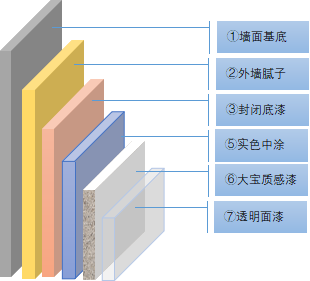 質感漆以高品質乳液,優選天然石英砂為骨料、搭配進口助劑、顏填料(色漿)、通過混合、分散工藝制備而成,本產品具有附著力強、柔韌度好、防開裂性佳、質感豐滿、防霉抗藻、耐候性佳和隔音降噪等卓越功能??赏ㄟ^不同效果的骨料搭配施工,營造出獨特立體的砂壁狀質感效果。