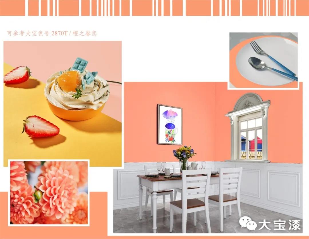 將蜜瓜橙帶進家里,無論是墻面、家具,還是軟裝配飾,都散發(fā)出滿滿的青春活力,并且還帶有甜蜜的味道,能讓人擁有繽紛燦爛的愉悅心情,絕對是夏天甜蜜美好的色彩。