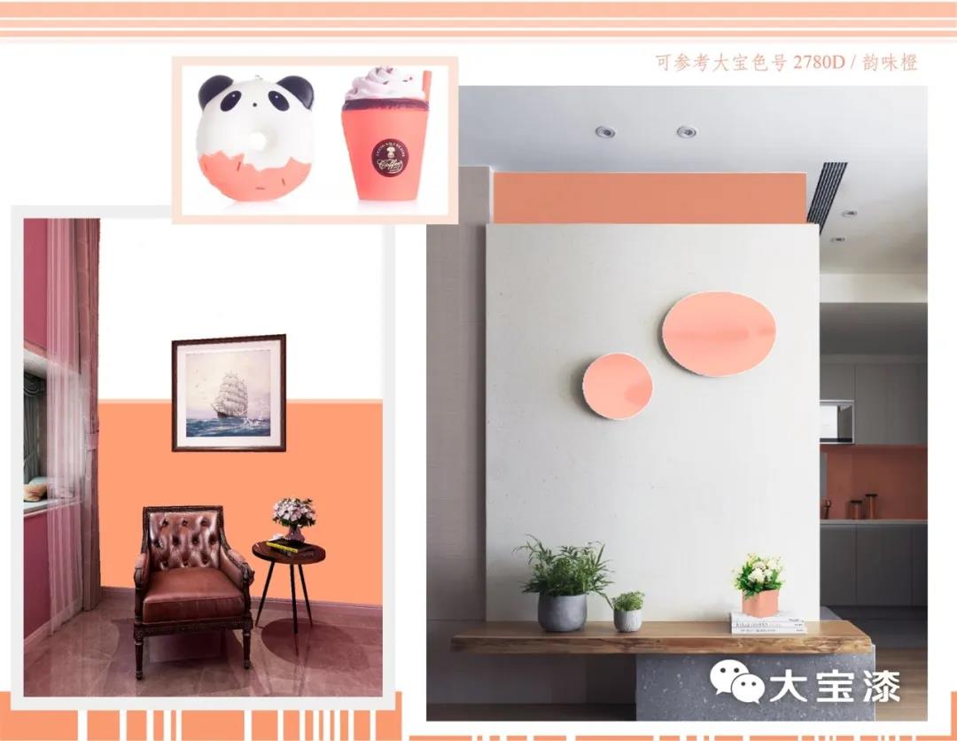 蜜瓜橙是WGSN公布的2020春夏五大關鍵色之一,蜜瓜橙帶著幾分粉色調,比激光橙要柔和許多,同時又帶著滿滿的活力,更受年輕群體青睞。