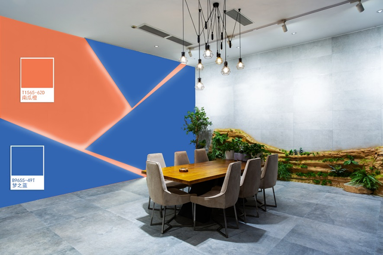 因?yàn)樗{(lán)色讓人明顯降低食欲。Pantone色彩研究所Leatrice Eiseman說(shuō)過(guò):藍(lán)色可以很好地表現(xiàn)出恒定和信任感,也能呈現(xiàn)出時(shí)髦的現(xiàn)代風(fēng)格。所以今天大寶色彩研發(fā)團(tuán)隊(duì)將通過(guò)夢(mèng)之藍(lán)B9655-49D色系搭配,在餐廳中使用藍(lán)色,擺脫「藍(lán)色魔咒」!